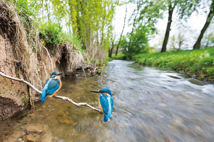Mit seinem leuchtend türkis-blauen Rücken, der orangen Unterseite und dem langen, spitzen Schnabel ist der Eisvogel wohl einer der auffälligsten Vögel Europas. Die Geschlechter lassen sich nur an der Schnabelfärbung unterscheiden: Beim Männchen ist der Unterschnabel schwarz, beim Weibchen orange gefärbt. Er ist etwas grösser als ein Haussperling, bleibt aber trotz seiner Farbenpracht durch das Wechselspiel von Licht und Schatten und sein heimliches Verhalten oft unentdeckt. Meist verrät ihn aber sein lauter, durchdringender «Zjii»-Ruf, bevor er in geradlinigem Flug mit schnellem Flügelschlag knapp über die Wasseroberfläche schiesst.